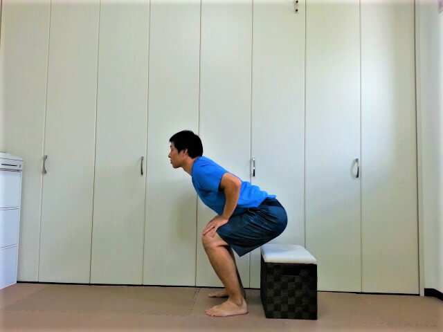 ➀足を肩幅くらいに開いて椅子に座ってから立ち上がる