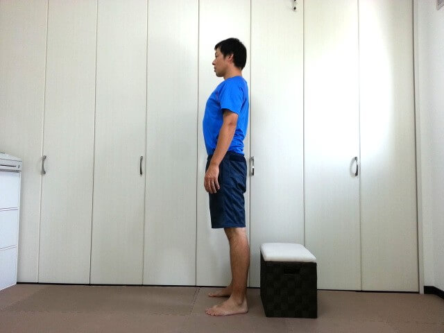 下におろせば下ろすほど負荷が強くなりますので、10回程できる負荷で下げる高さを調整してください。